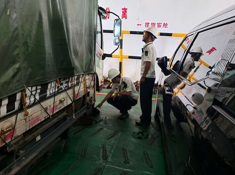同时,执法人员登轮对投入运营的客滚船提前进行全面检查,重点核查船舶救生设备、通讯导航系统及货物绑扎情况,确保船舶“健康”投入复航运输,从源头筑牢安全防线。此外,湛江航标处对航标、灯塔、导助航设施的运行状态进行了逐一检查,确认信号正常、位置稳固,及时修复受损设备,确保船舶航行时能准确获取导航信息。
