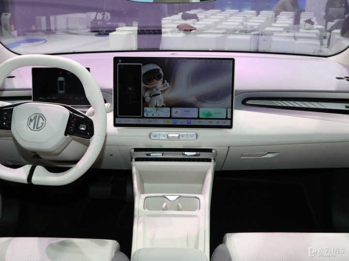 外观部分,新车并未采用纯电车常见的全封闭式格栅,而是通过黑色蜂窝状网格下包围和引擎盖上的“MG”浮雕标识,强化运动感与品牌辨识度。